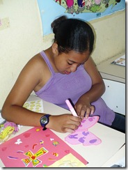 Below, students at Vila Andrade doing an alphabet & coloring test.